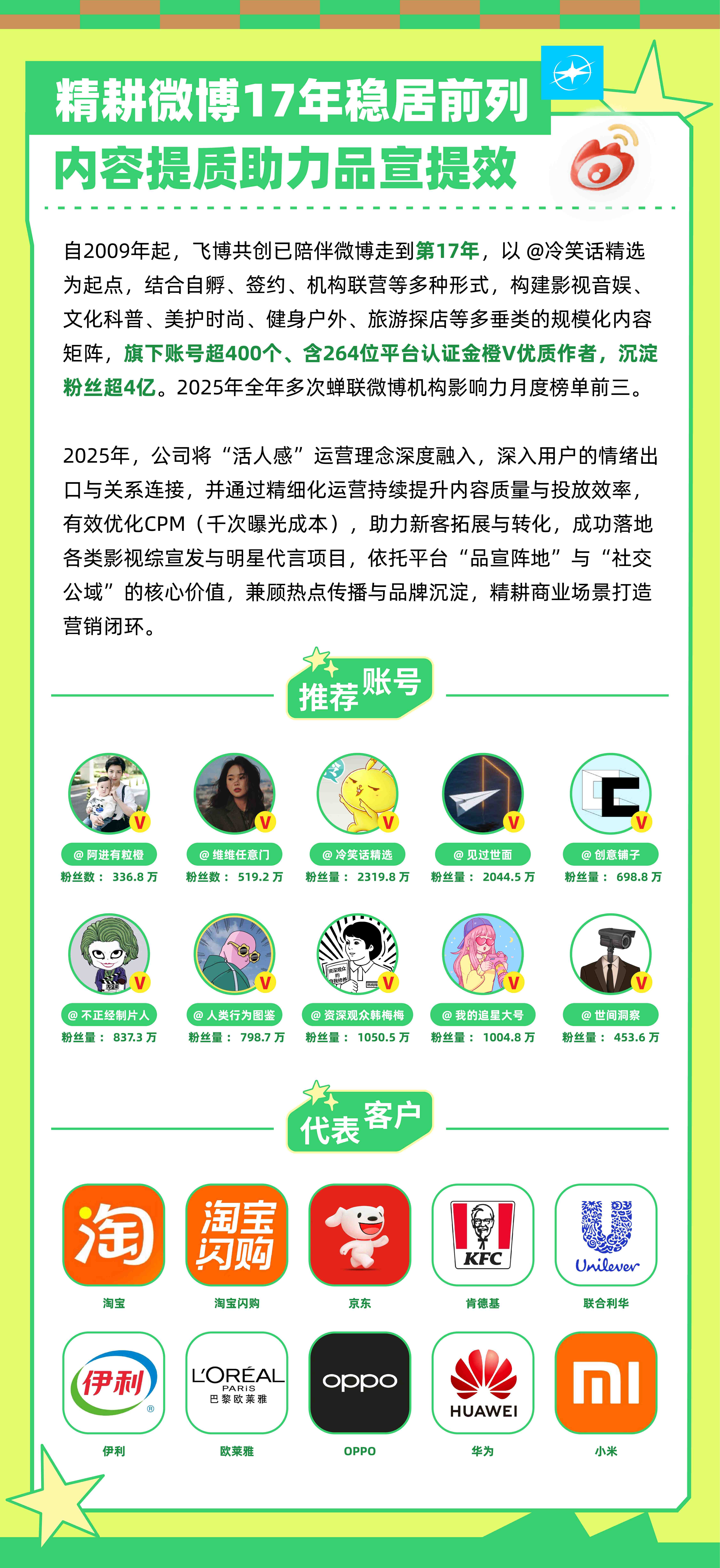 成立的第十七年,飞博共创持续深耕微博、小红书等平台,以有温度的内容连接人心,携手优质达人和表情包IP,以全生态布局赋能合作伙伴,共创品牌价值与商业新增长。